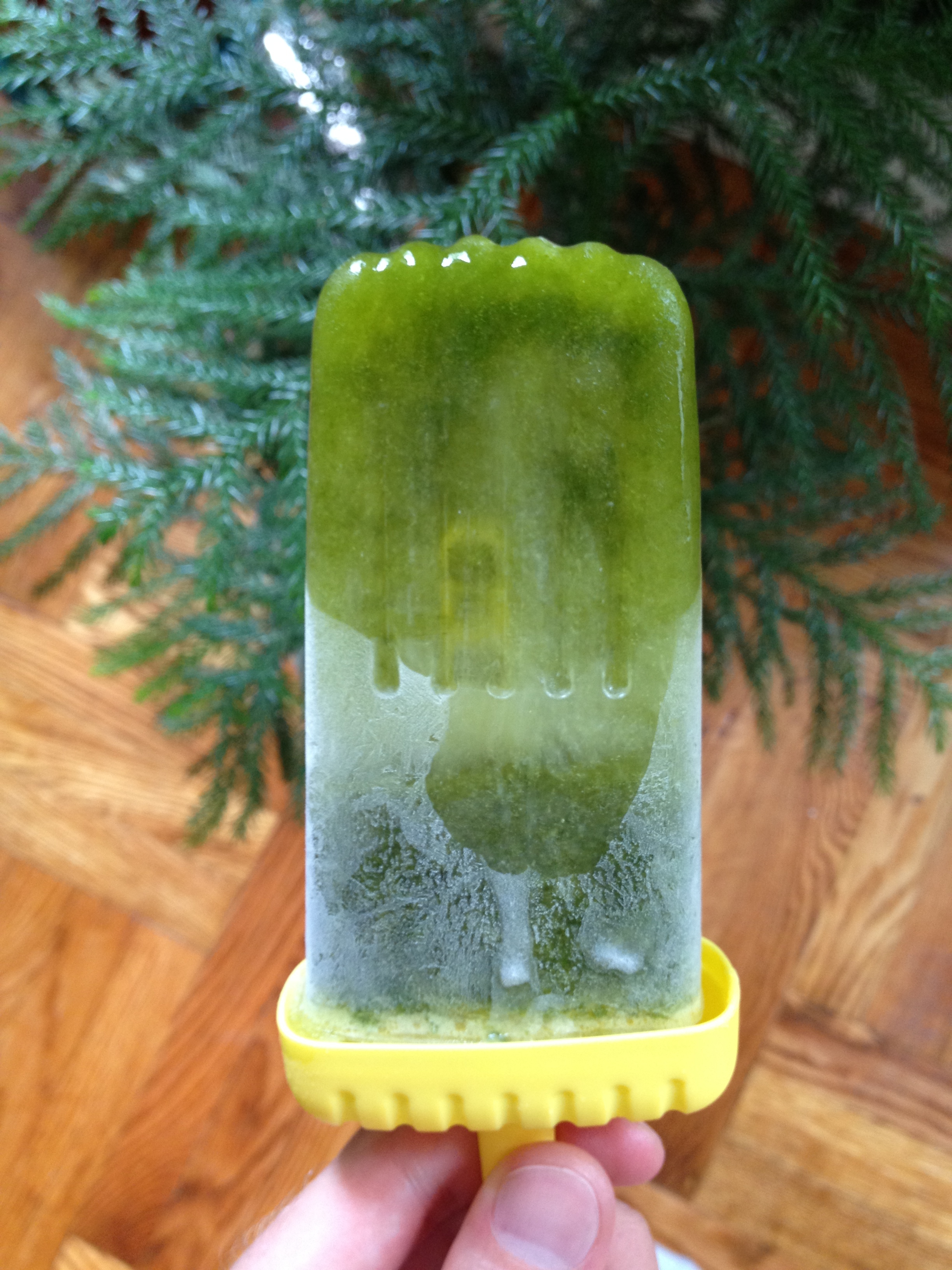 I had some lettuce scraps left over from lunch yesterday so I decided to blend them with some sour lemonade and make popsicles. Some of the leafy pulp floated to the top but they still tasted really good!