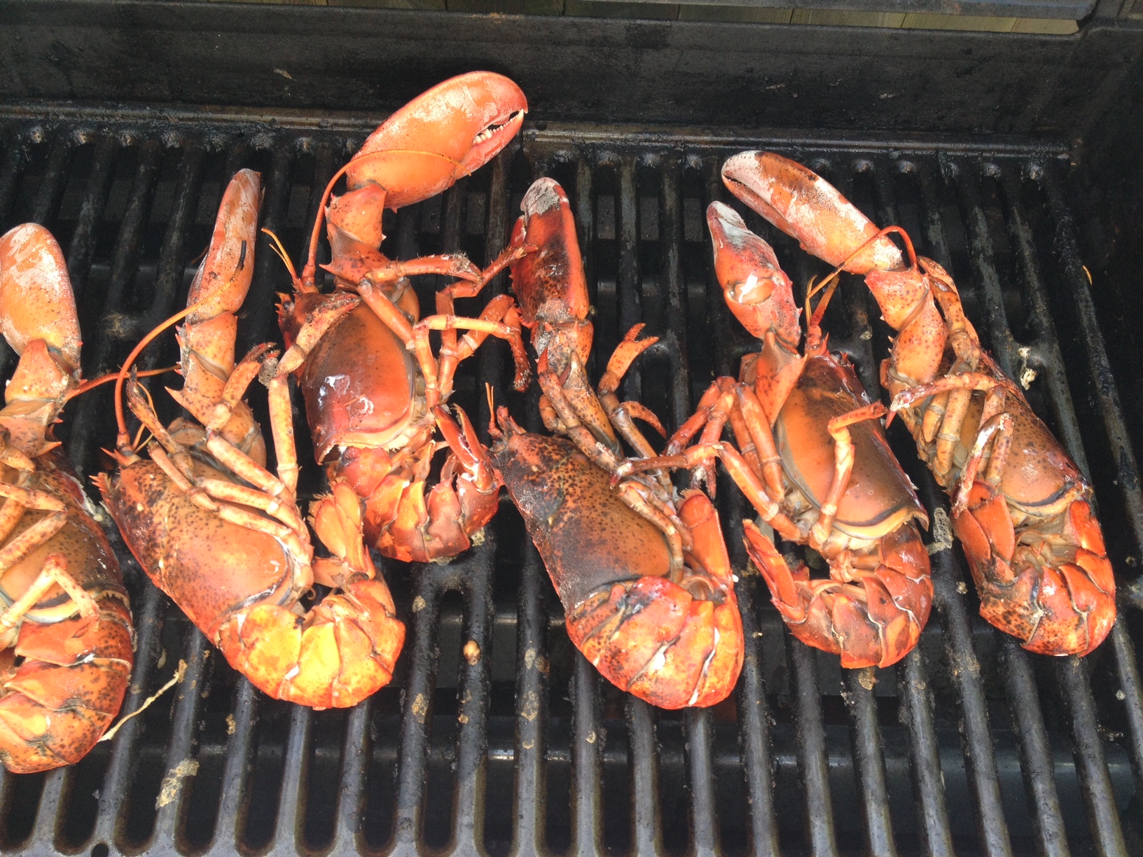 The local Stop & Shop in Provincetown is having a sale on chicken lobsters (small, tender lobsters popular in New England); they’re $5.99 per pound with the store card. I bought three and the total came out to be $20. After I got them home I stored them in the refrigerator until the grill was ready.